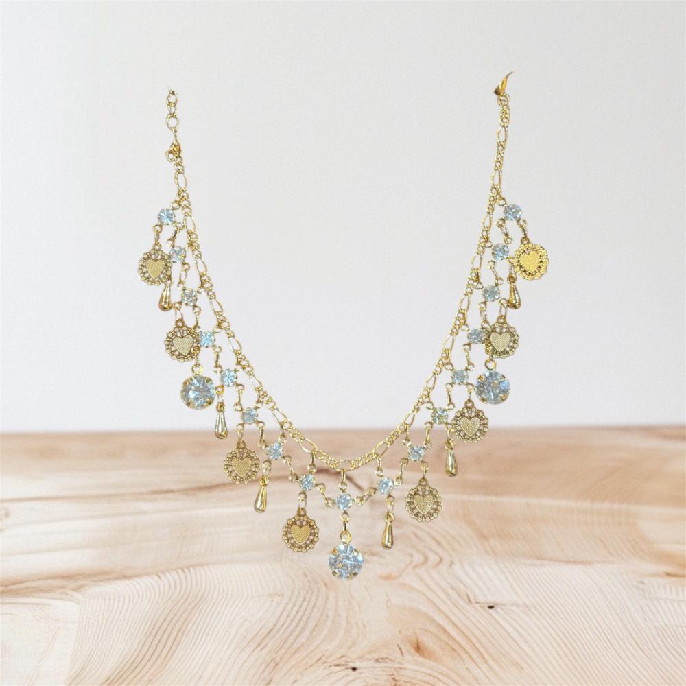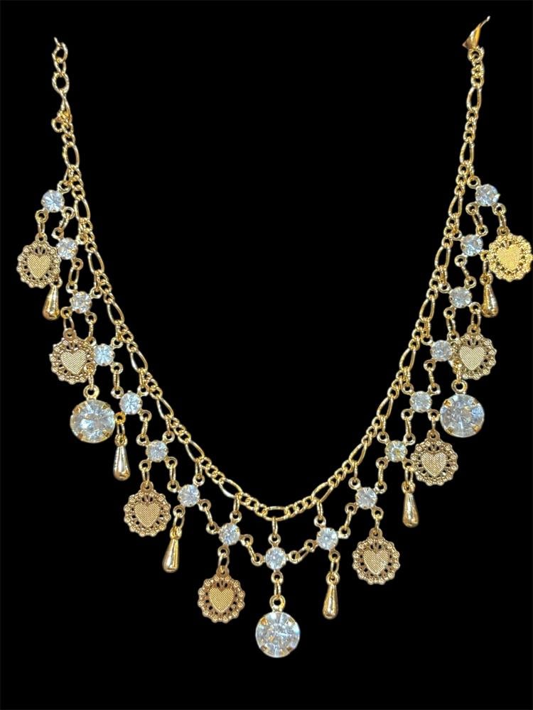 خلخال قدم هندي فاخر باللون الذهبي، مزين بفصوص براقة وسلسلتين أنيقتين تضفيان لمسة مميزة على القدم الأنثوي. تصميم يجمع بين الأصالة والرقي ليزين خطواتك بجمال آسر يناسب السهرات والمناسبات الخاصة.